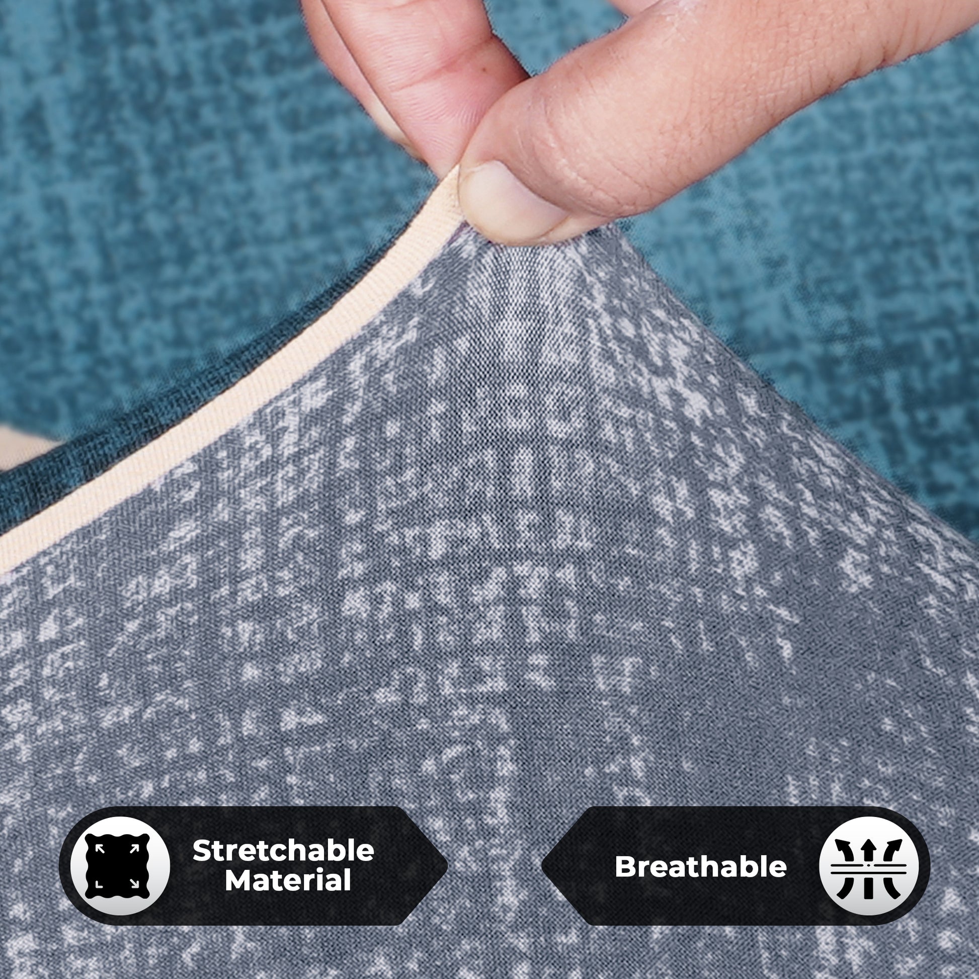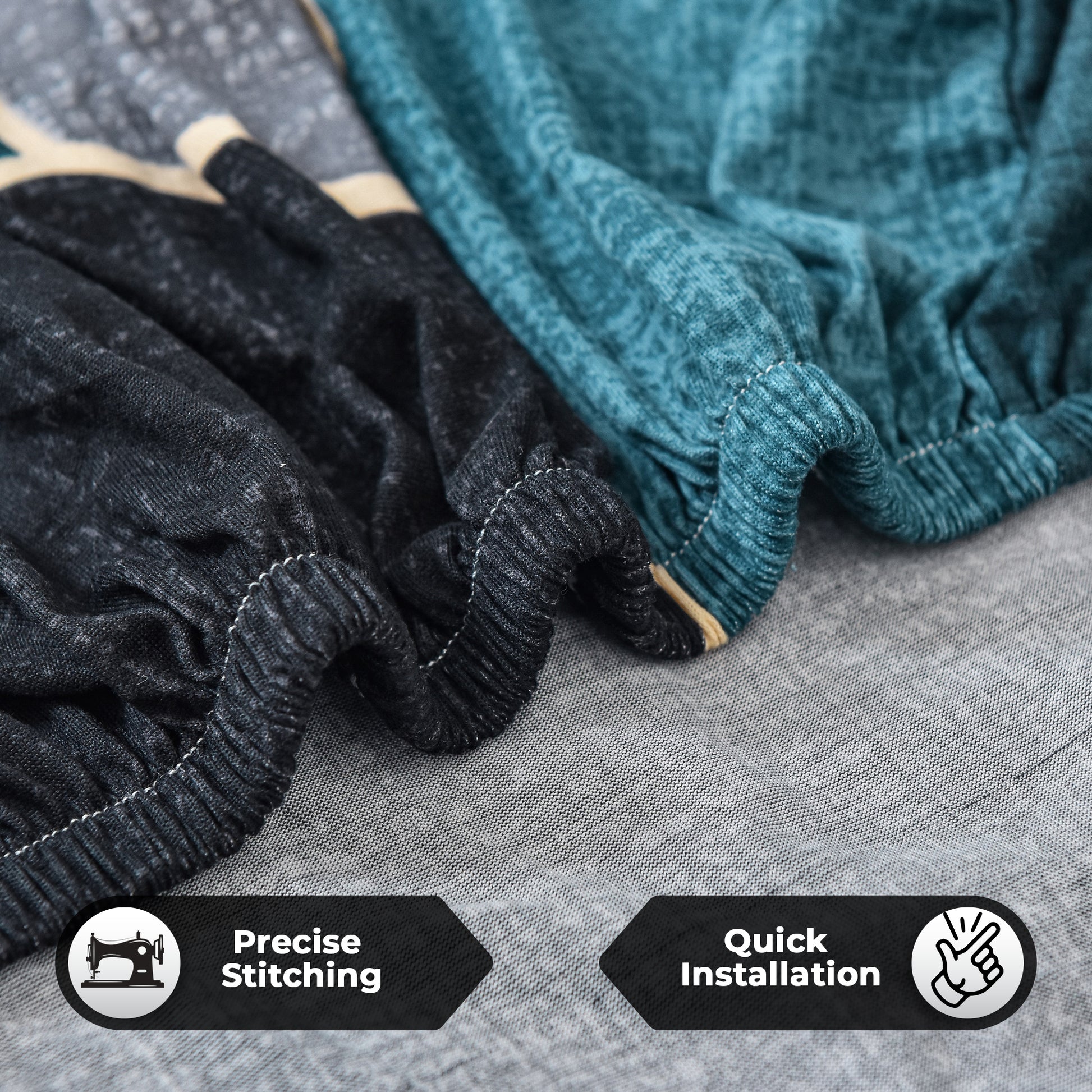 Sofa Cover Combo – 1 Pc 1 Seater, 1 Pc 2 Seater, and 1 Pc 3 Seater Elastic Stretchable in Navy Blue & Black Abstract Pattern by Story@Home
