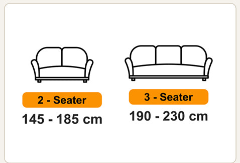 A: Our sofa covers come in sizes for 2 and 3-seater sofas and are stretchable to fit most standard sofa shapes.