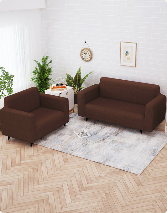 Sofa Cover Combo – 1 Pc 2 Seater and 1 Pc 3 Seater Elastic Stretchable in Dark Brown Criss Cross Pattern by Story@Home