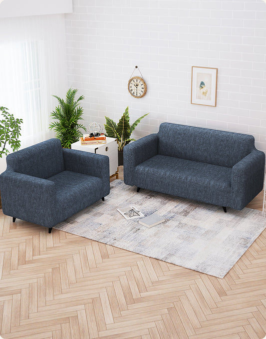 Sofa Cover Combo – 1 Pc 2 Seater and 1 Pc 3 Seater Elastic Stretchable in Grey Criss Cross Pattern by Story@Home