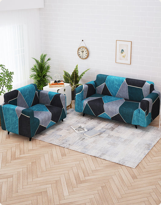 Sofa Cover Combo – 1 Pc 2 Seater and 1 Pc 3 Seater Elastic Stretchable in Navy Blue & Black Abstract Pattern by Story@Home