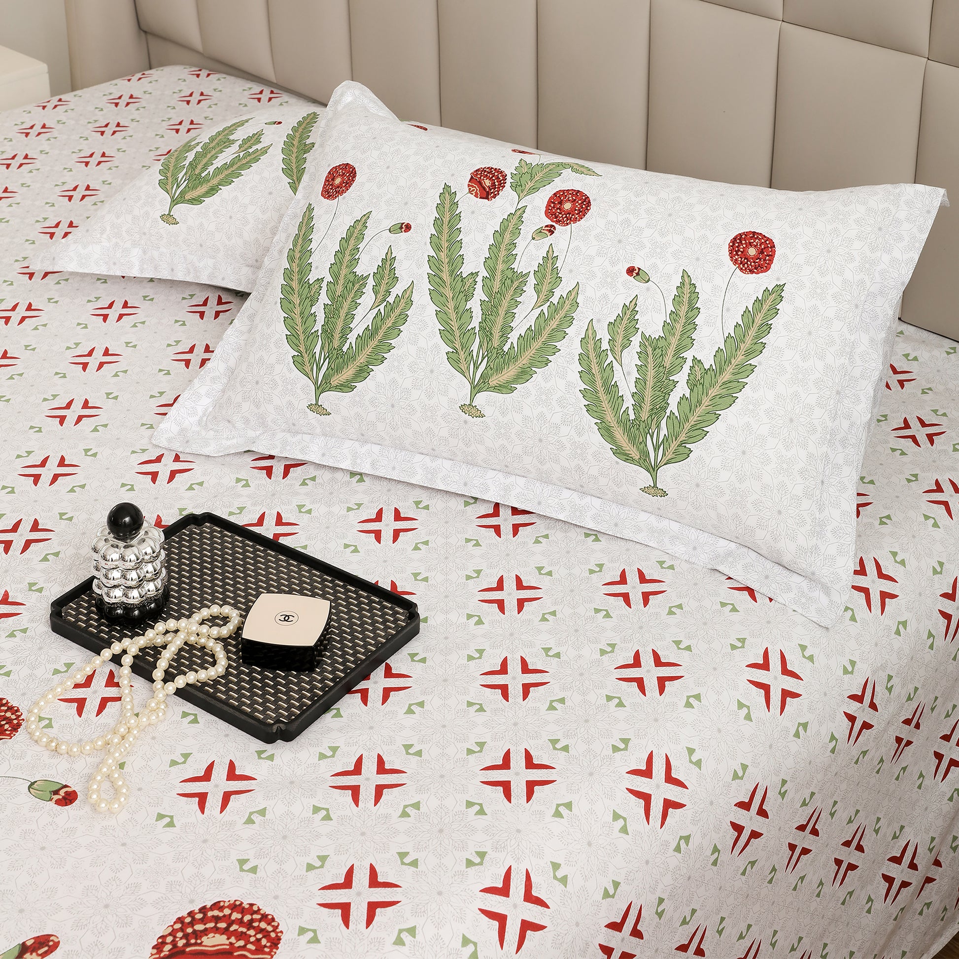 Story@Home 240 TC 100% Cotton White & Brick Red King size Bedsheet