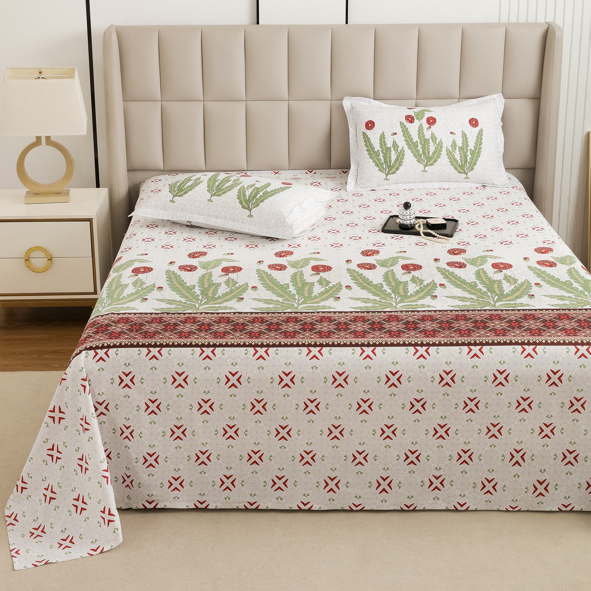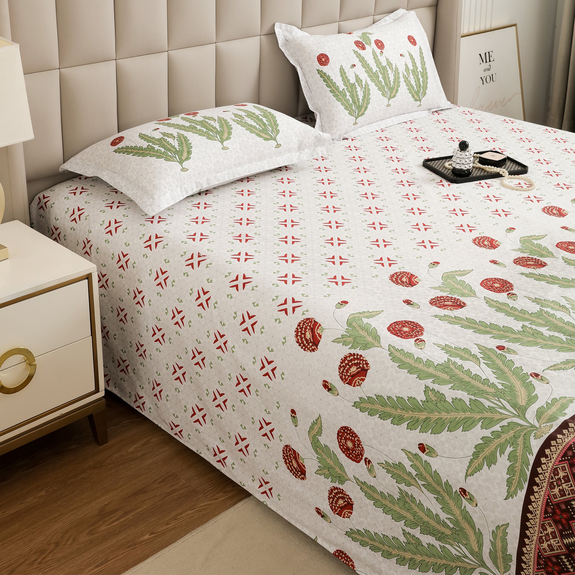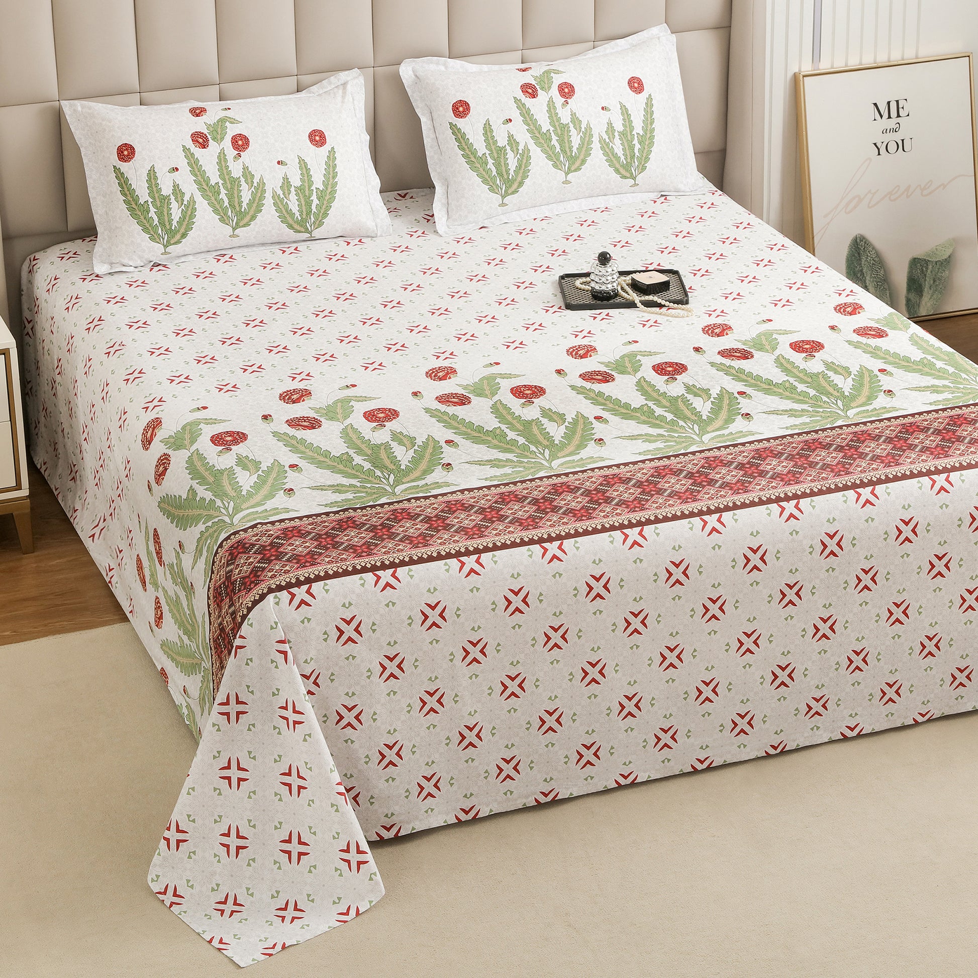 King Bedsheet : 270 X 270 cm | Pillow Cover :46 X 69 cm |