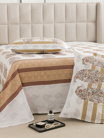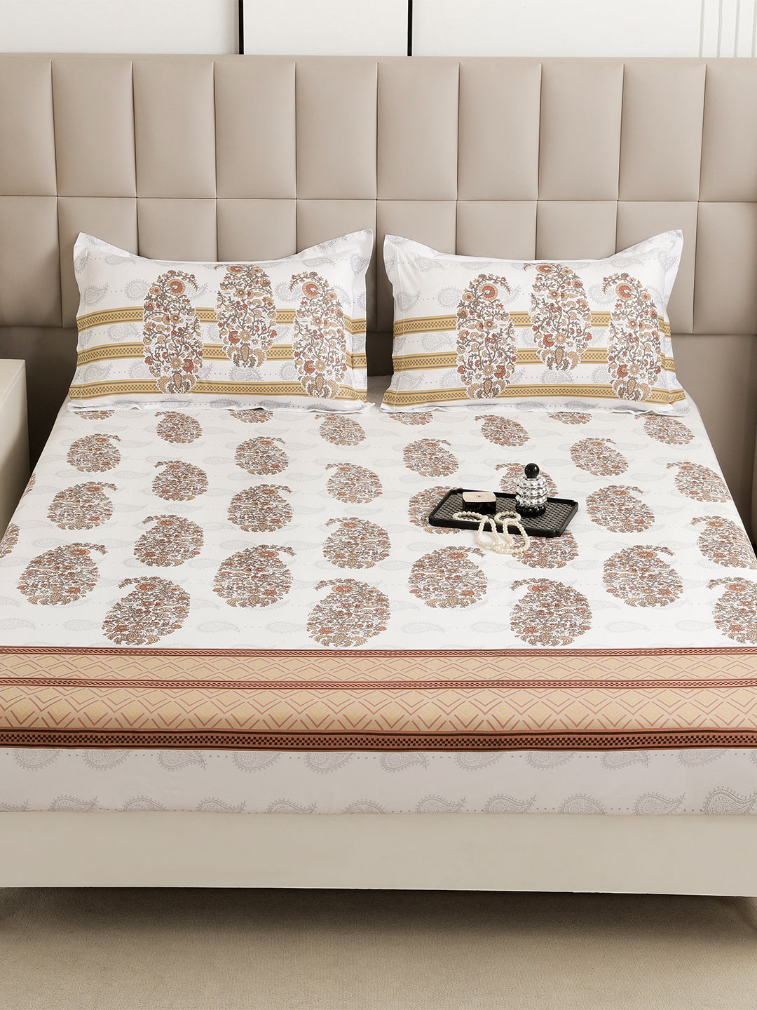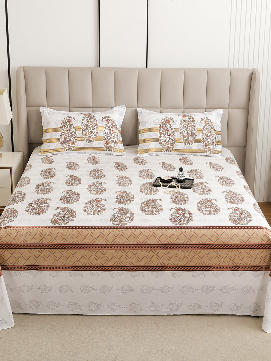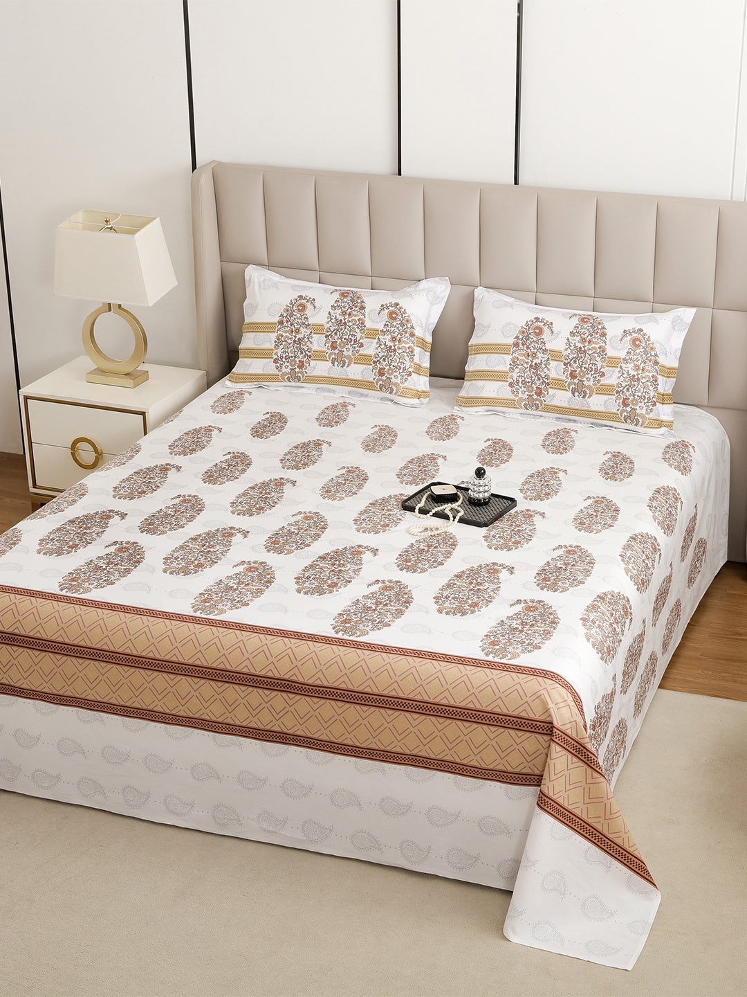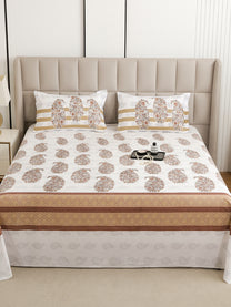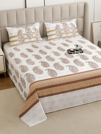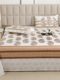 Story@Home 240 TC 100% Cotton White & Brown King size Bedsheet