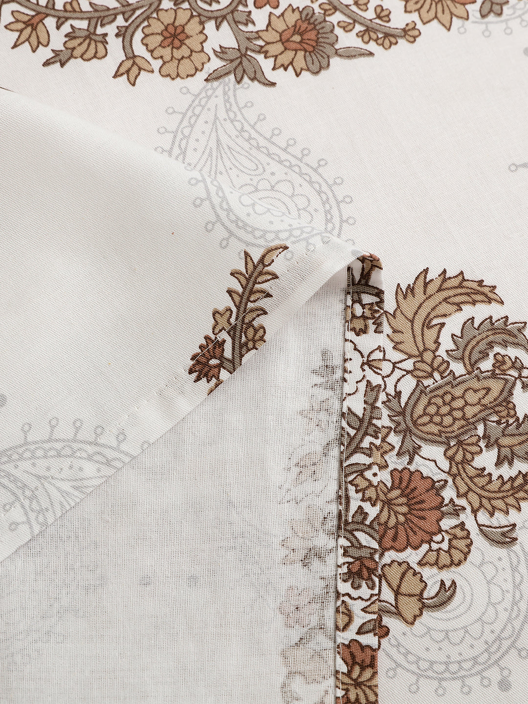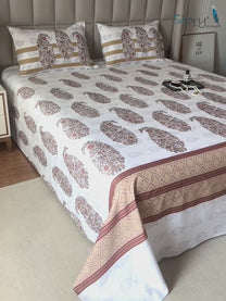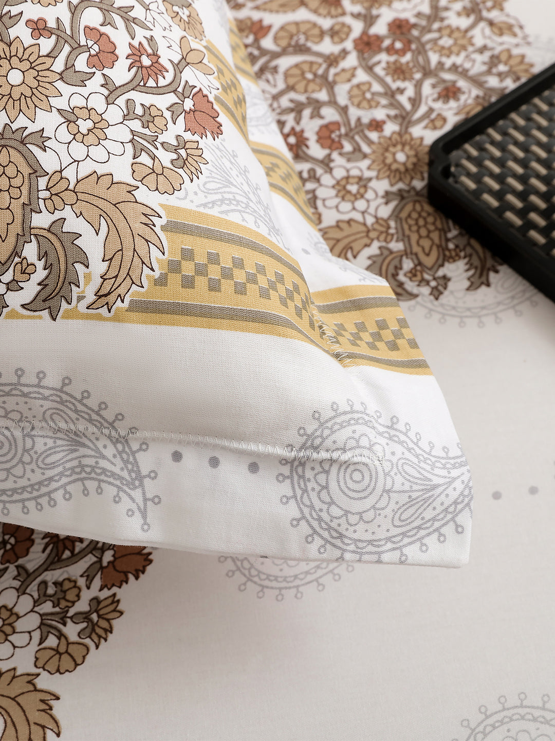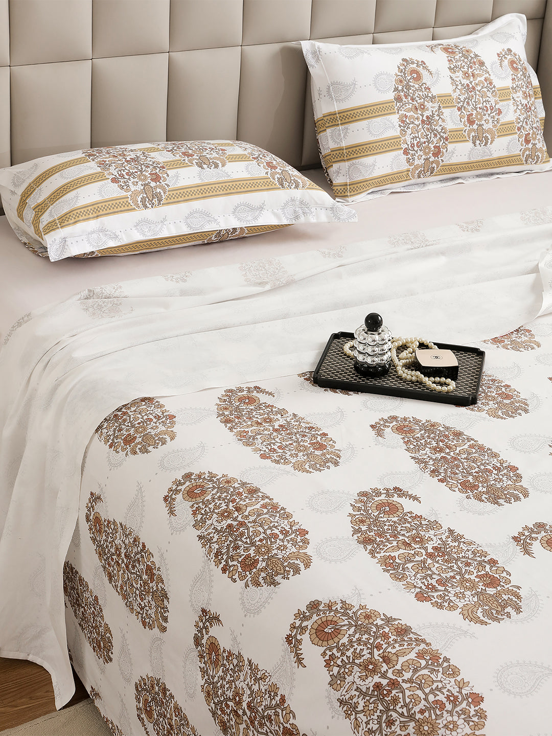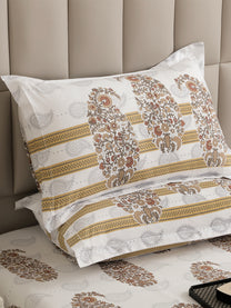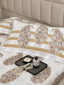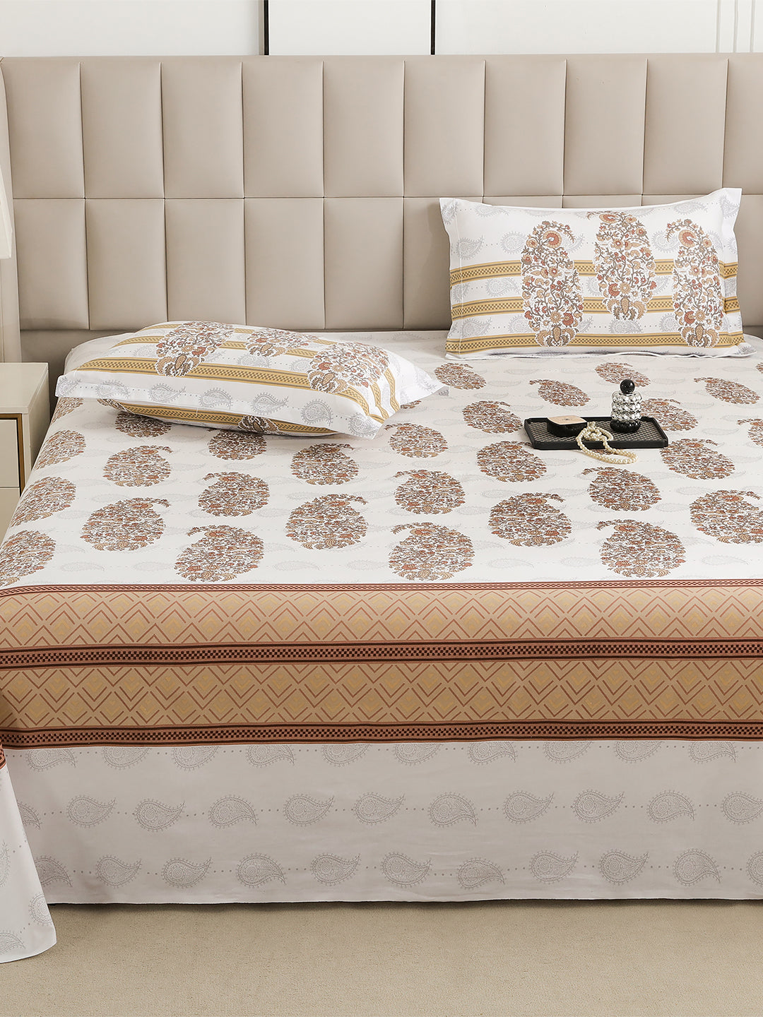 Story@Home 240 TC 100% Cotton White & Brown King size Bedsheet