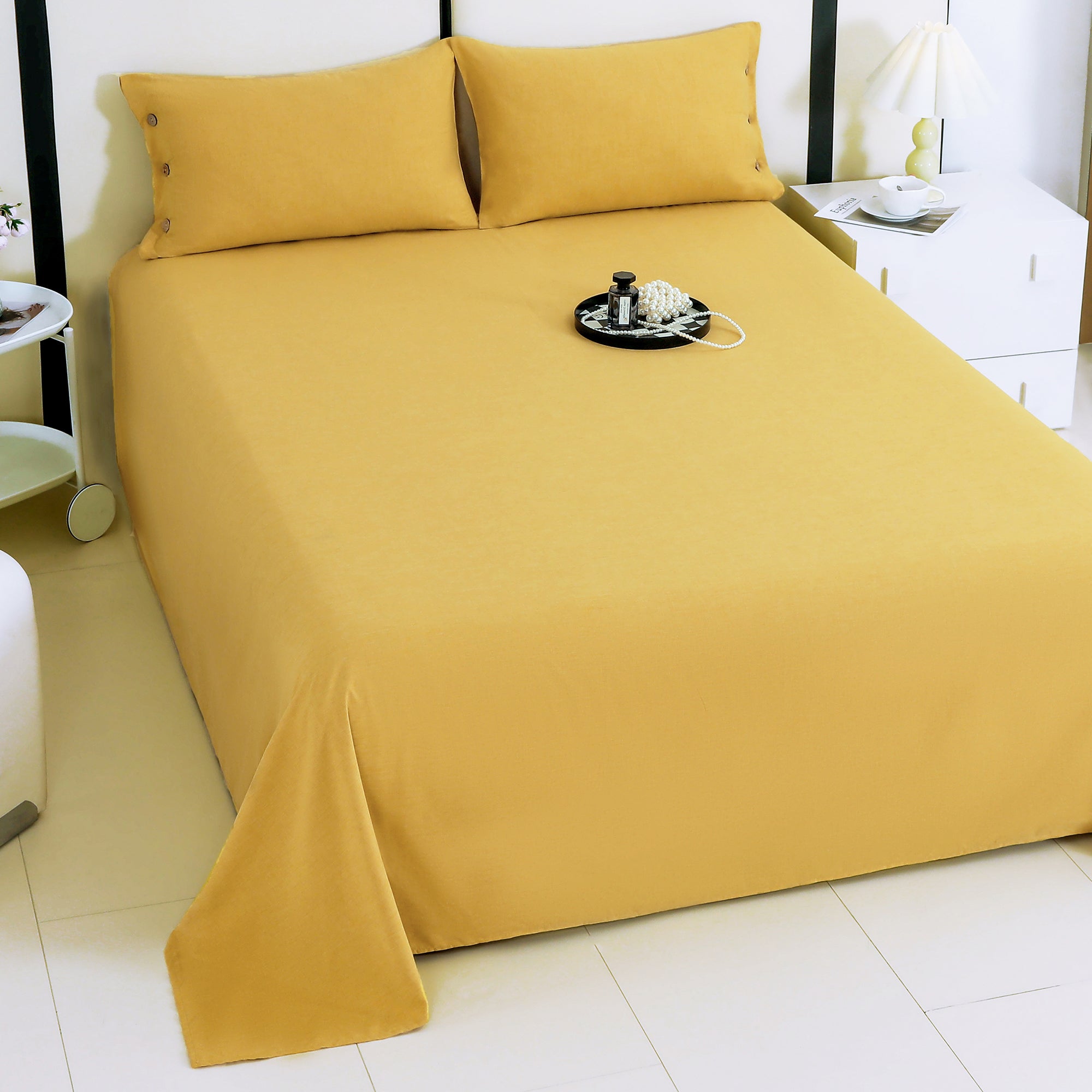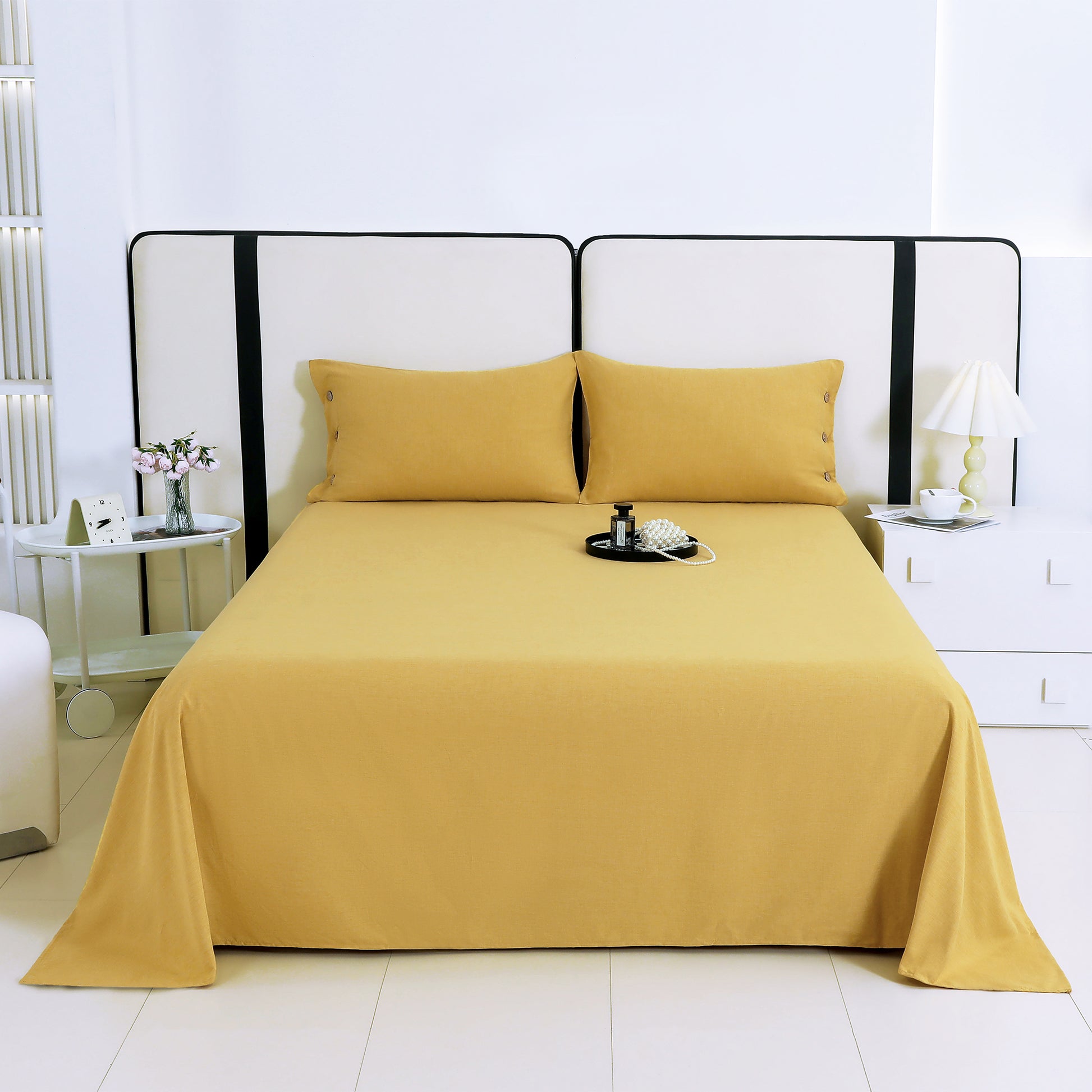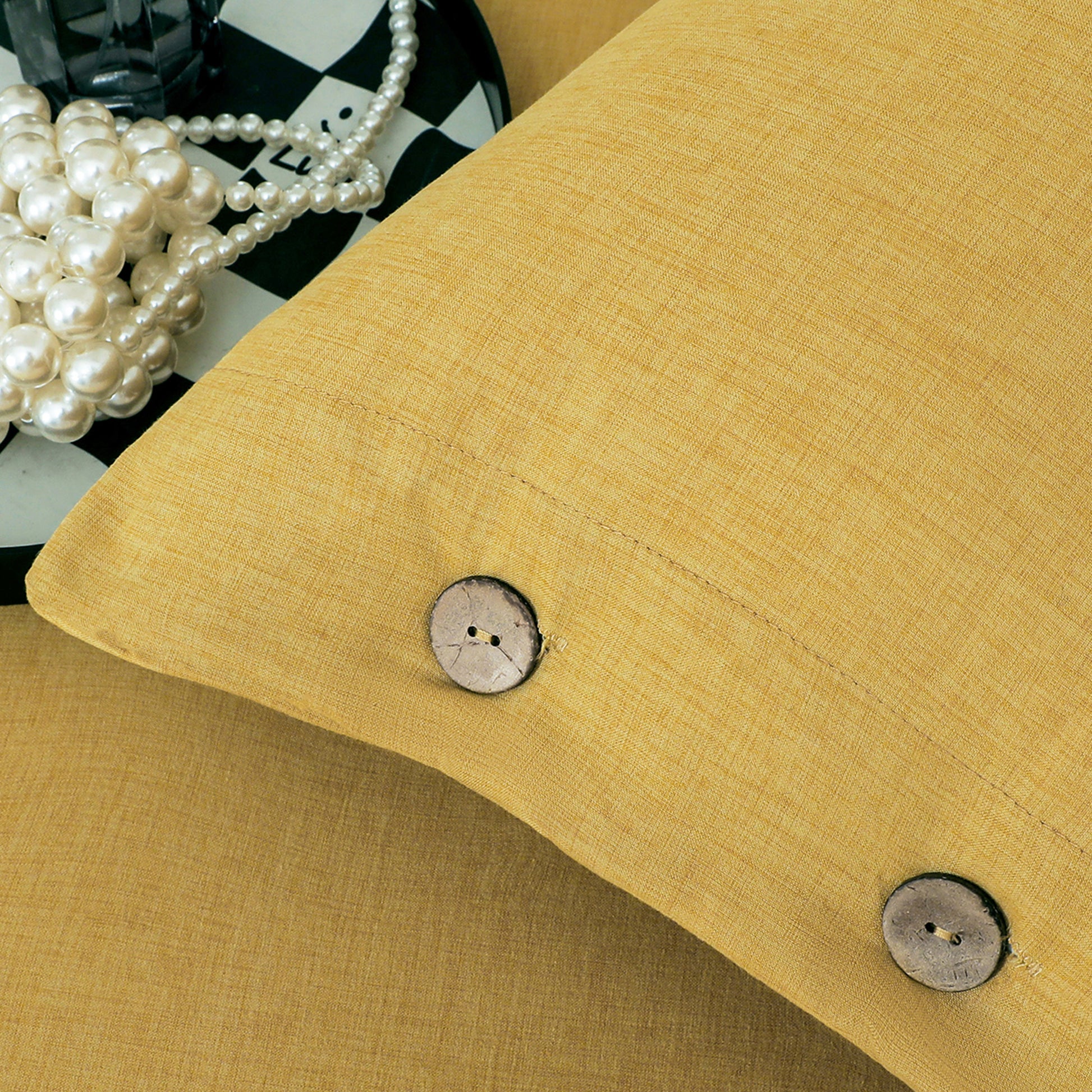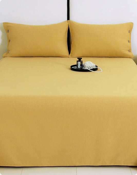 Story@Home 240 TC Mustard Buttonique Cotton Linen King Size Solid Flat Bedsheet with 2 Pillow Covers