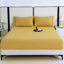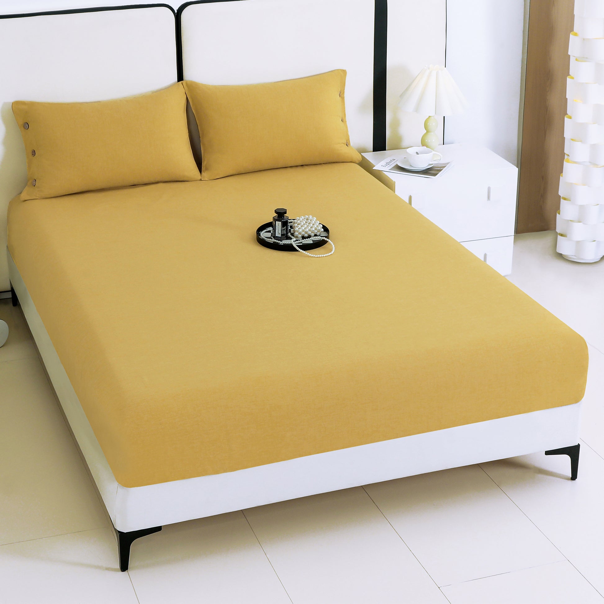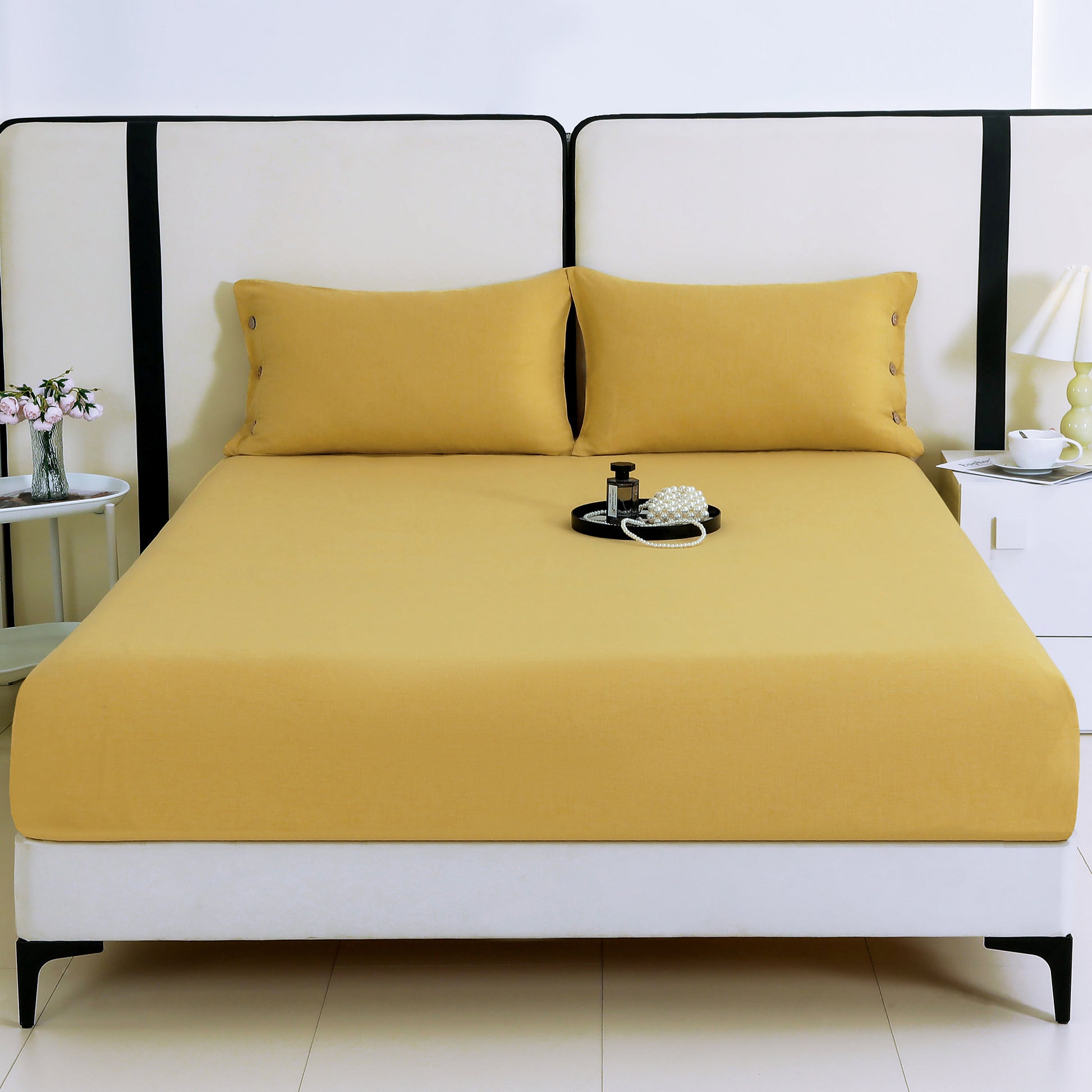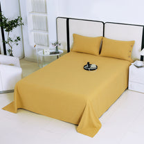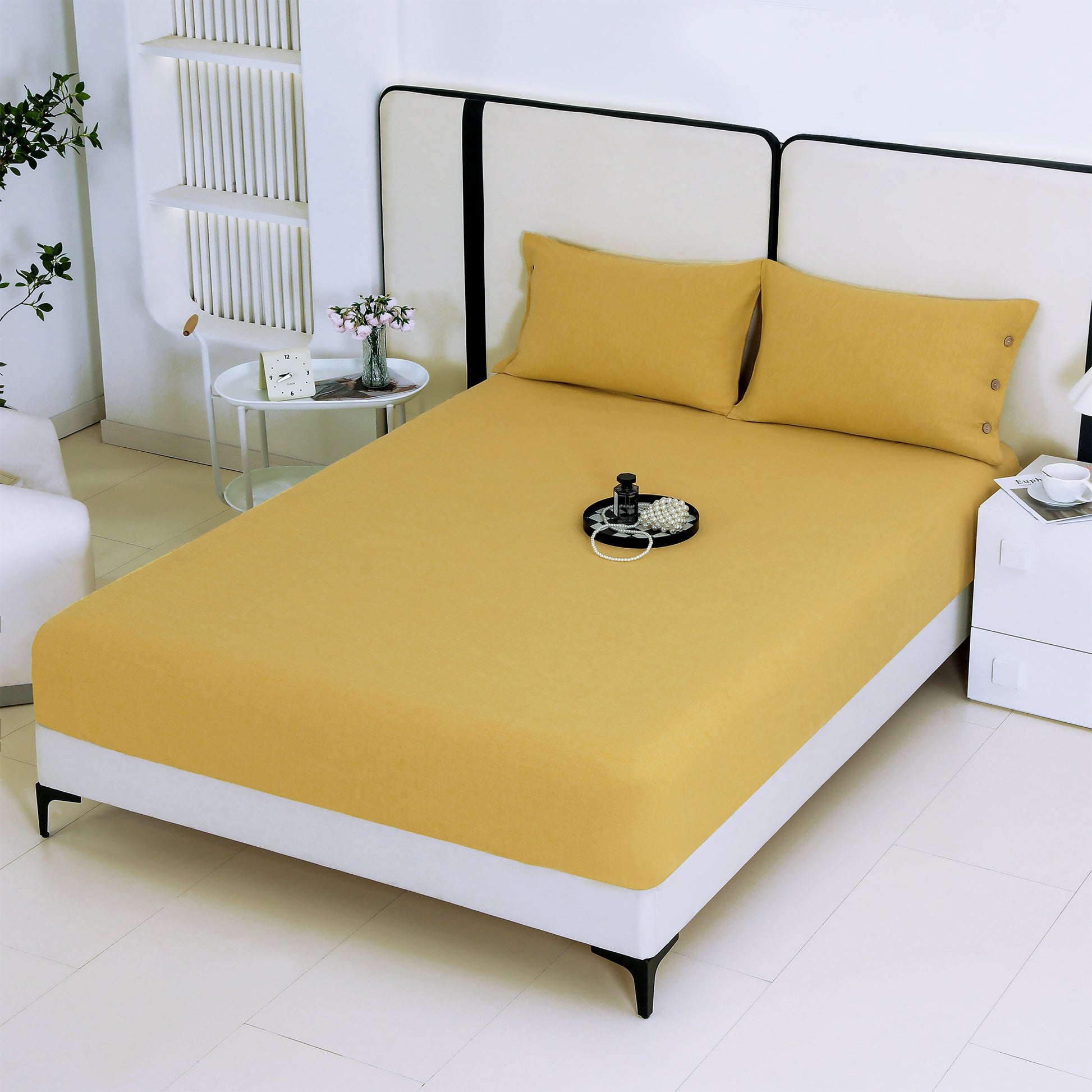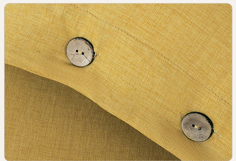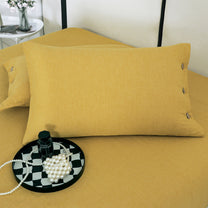 Story@Home 240 TC Mustard Buttonique Cotton Linen King Size Solid Flat Bedsheet with 2 Pillow Covers