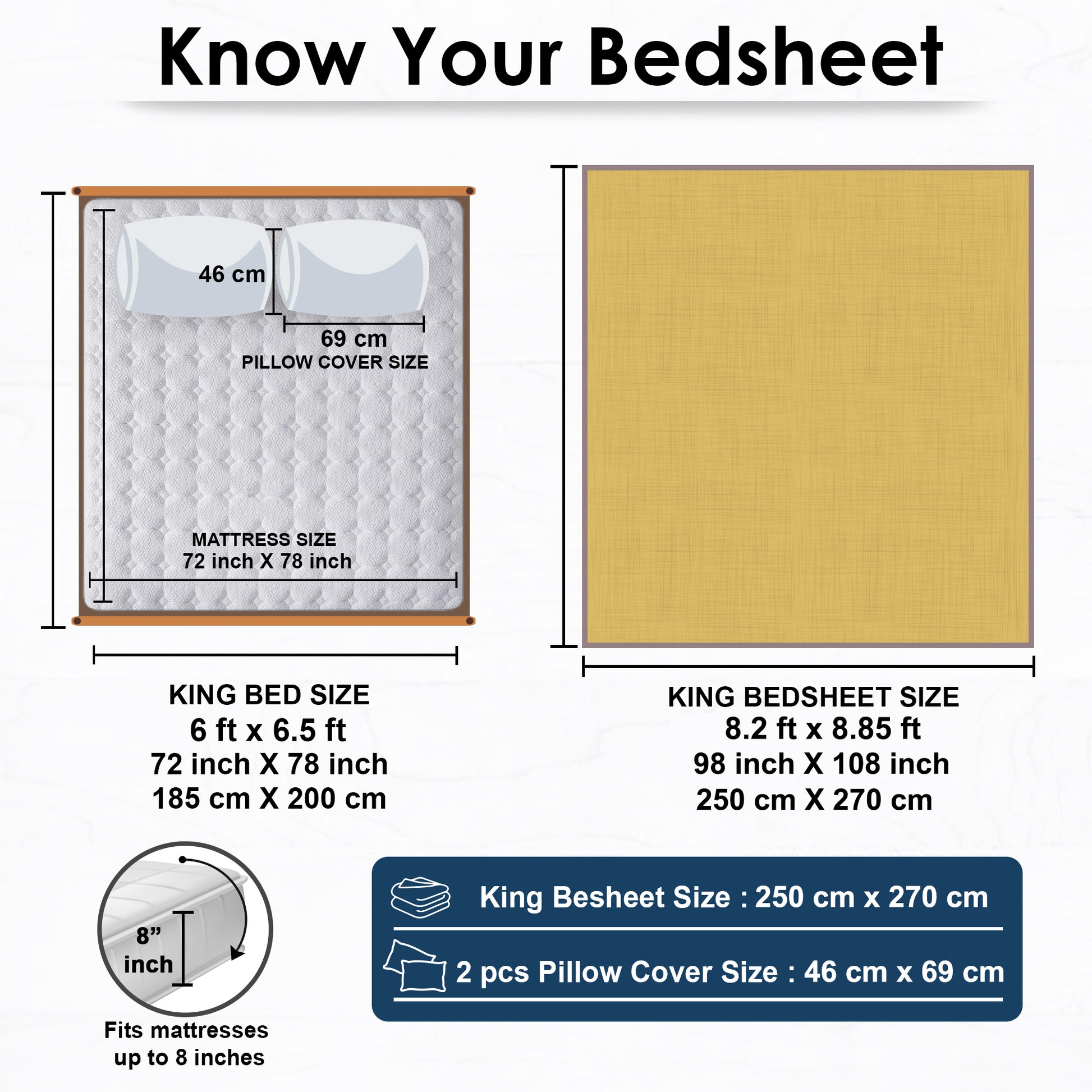 King Bedsheet : 250 X 270 cm | Pillow Cover :46 X 69 cm |