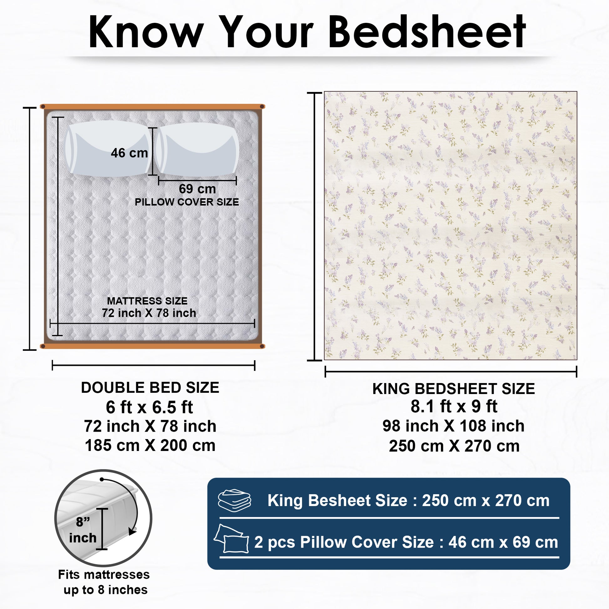 Story@home 240 TC Air Cotton Microfiber White & Purple King Size Floral Bedsheet with 2 Pillow Covers