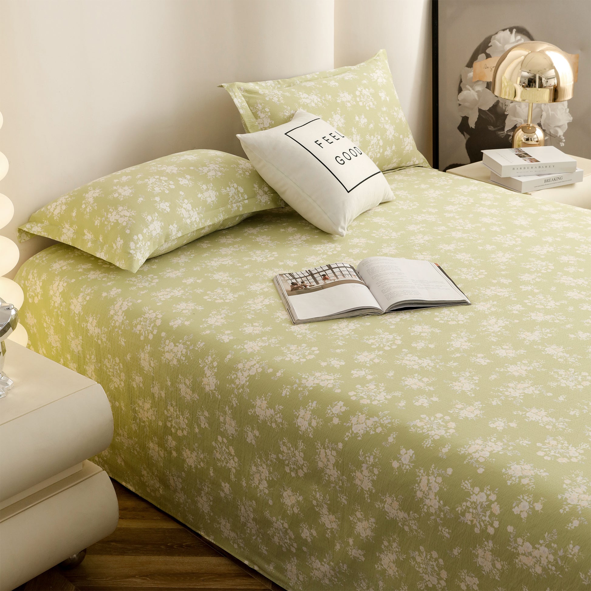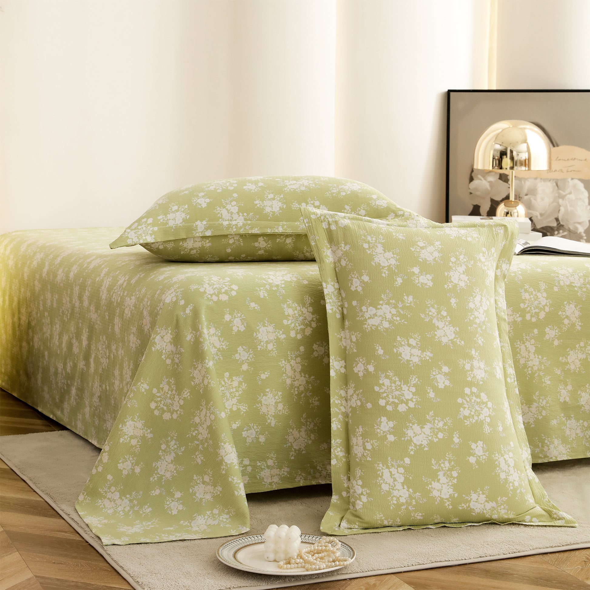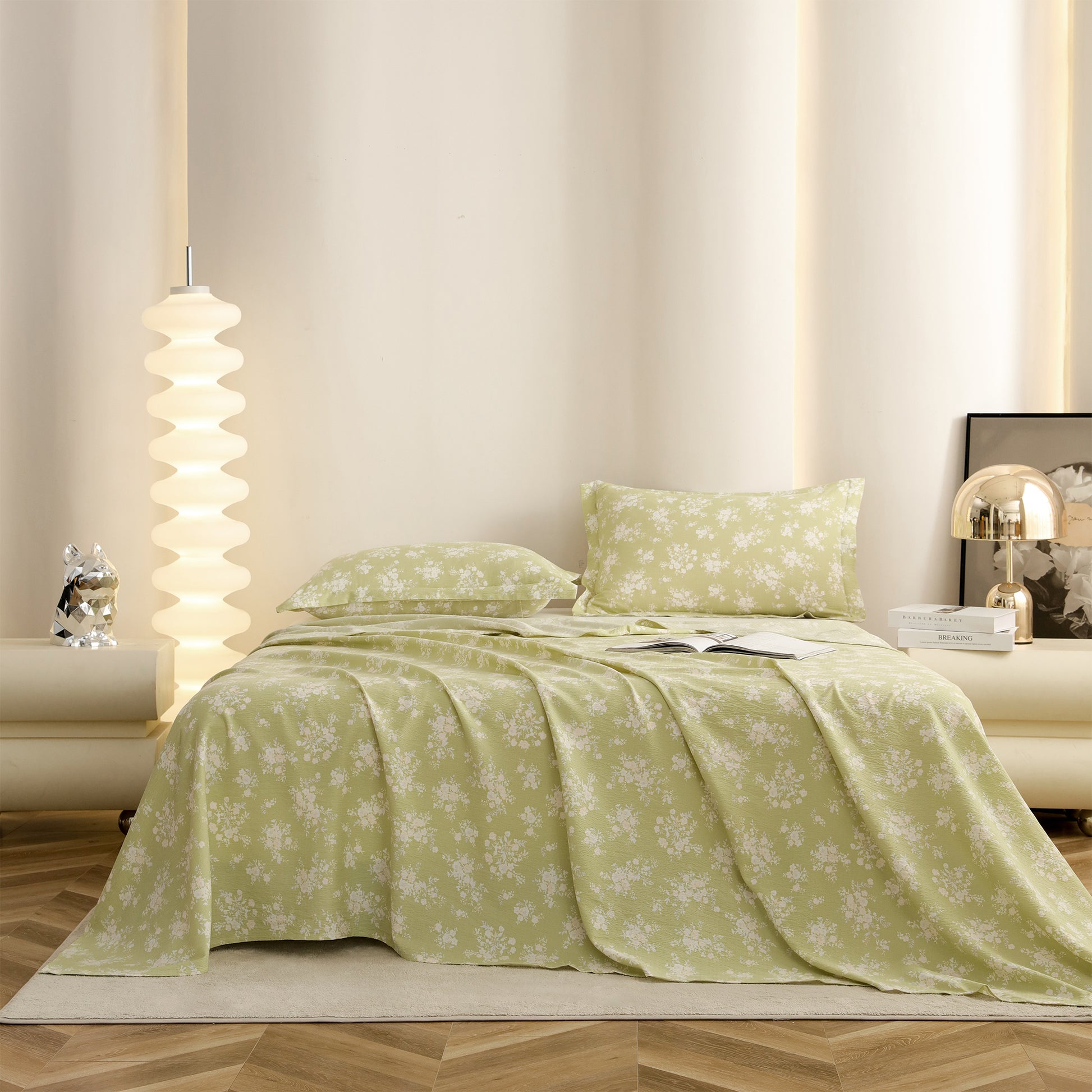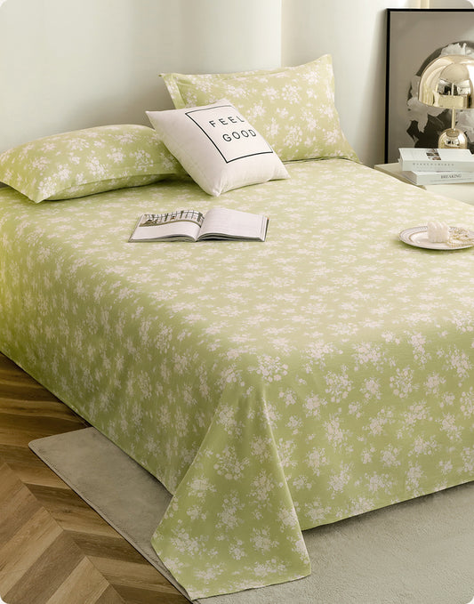 Story@home 300 TC Air Cotton Microfiber Green & White King Size Floral Bedsheet with 2 Pillow Covers