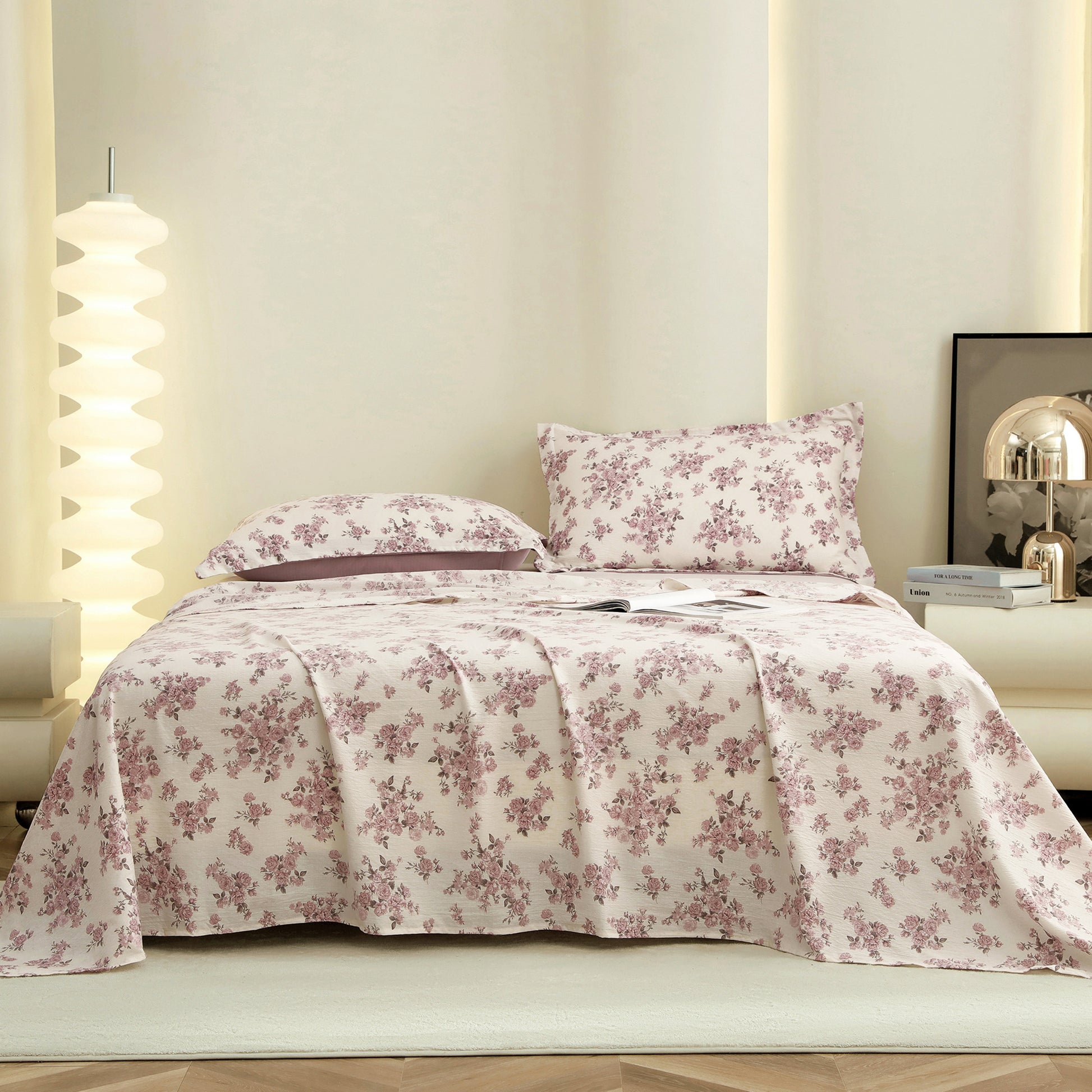 Story@home 300 TC Air Cotton Microfiber Light Purple & White King Size Floral Bedsheet with 2 Pillow Covers