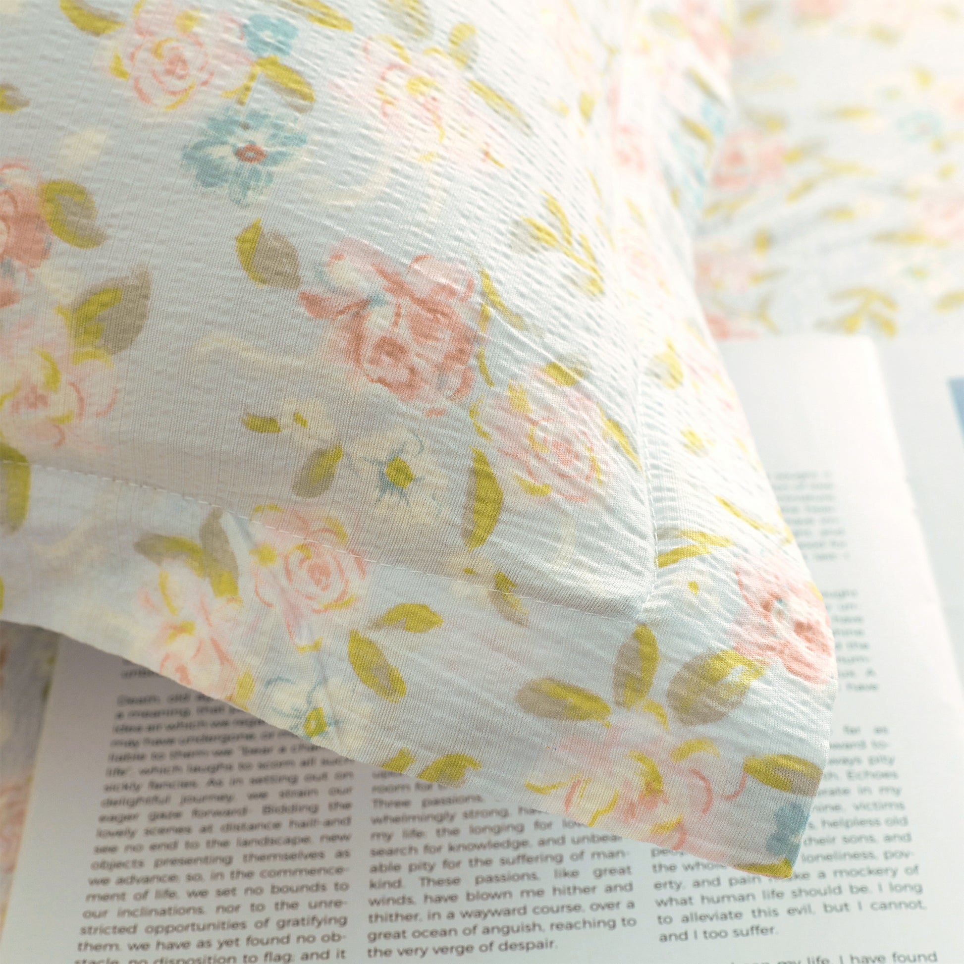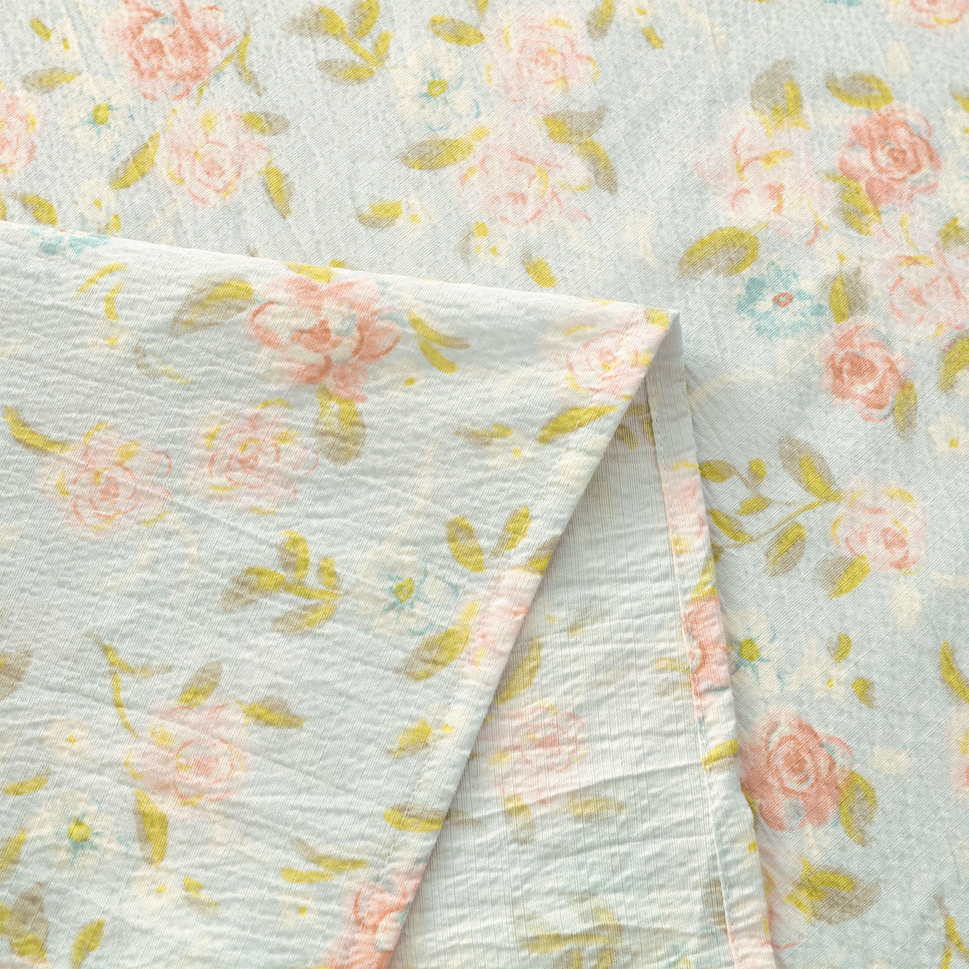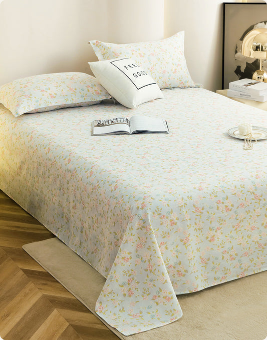 Story@home 300 TC Air Cotton Microfiber Light Blue & Peach King Size Floral Bedsheet with 2 Pillow Covers