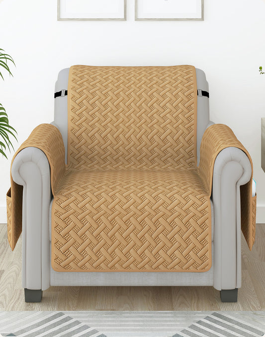 Sofa Throw Cover With Solid Pattern In Beige For 1 | 2 | 3 | 4 Seater From Story@Home