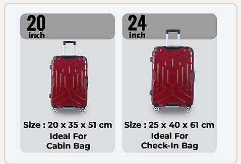 A: The trolley bag is available in Small (20") and Medium (24") sizes.
