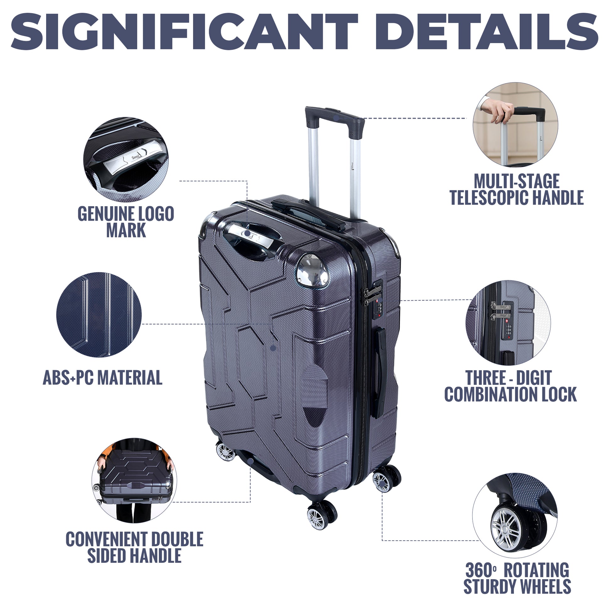 Scratch-resistant, lightweight, 360° rotating wheels, combination lock, multi-stage telescopic handle, versatile carrying handles |