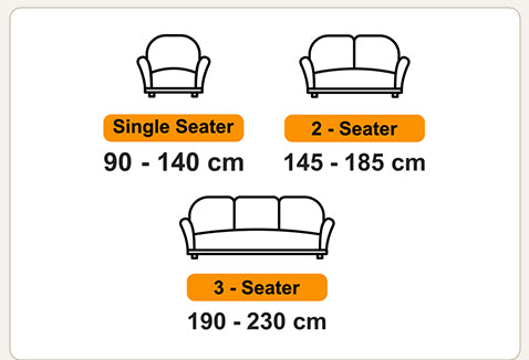 A: Our sofa covers come in sizes for 1, 2, 3, and 4-seater sofas and are stretchable to fit most standard sofa shapes.