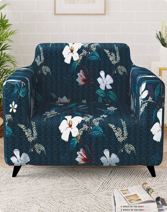 Sofa Cover for 1 | 2 | 3 Seater – Elastic Stretchable in Navy Blue Floral Pattern by Story@Home