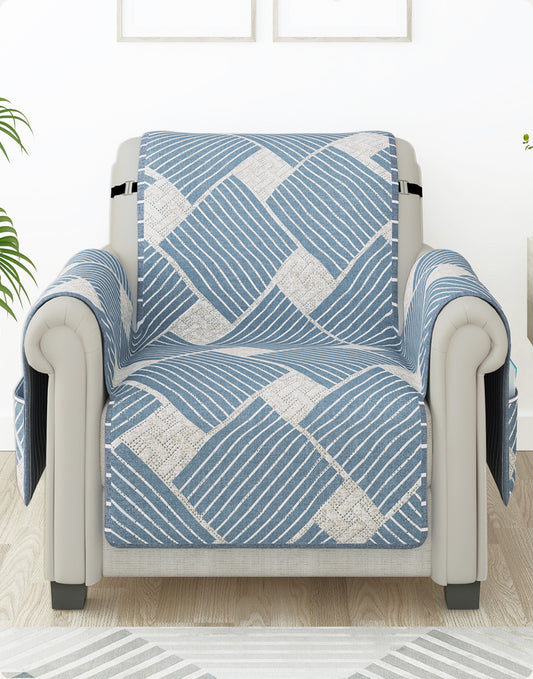 Sofa Throw Cover With Geometric & Stripes Pattern In Greyish Blue For 1 | 2 | 3 | 4 Seater From Story@Home