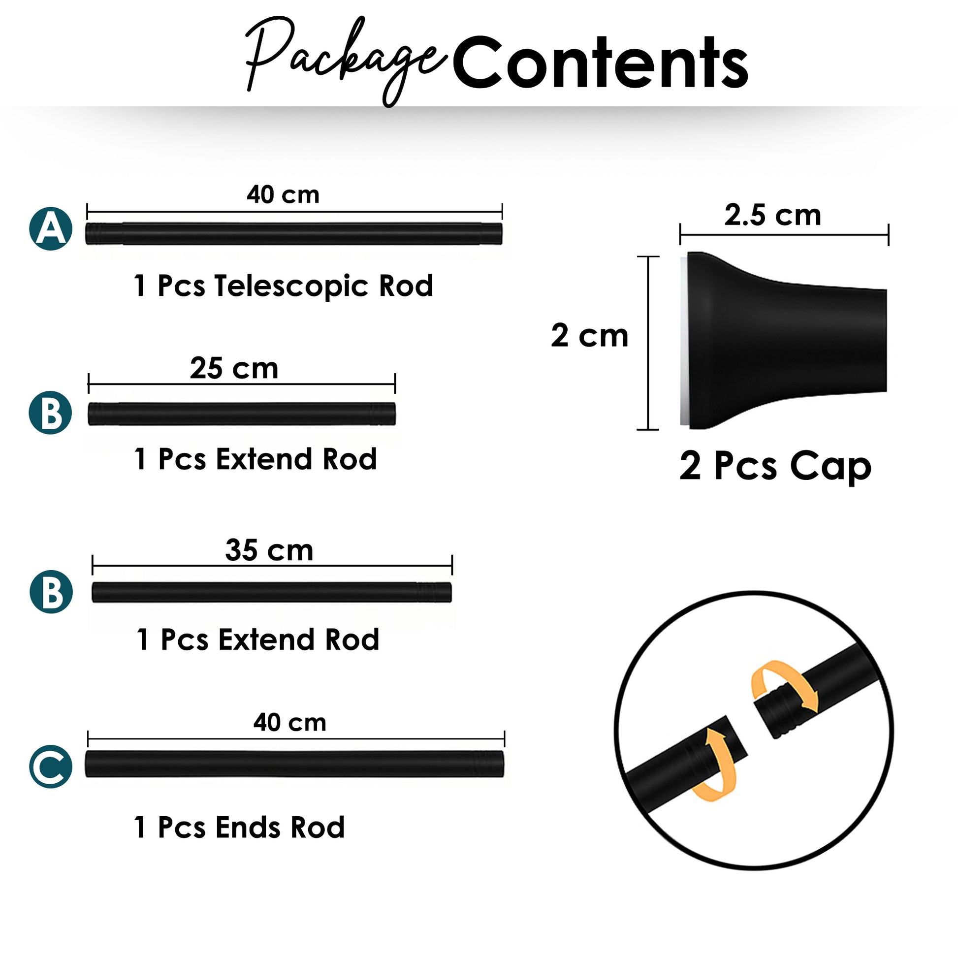 Story@Home Matte Black Extendable Shower Curtain Tension Rod Non-Drilling Anti-Skid Spring Pull Rod