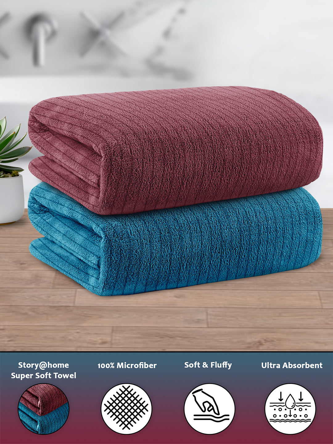 Story@Home Pink & Blue 2 Units Microfiber Bath Towels For Men, Women & Kids