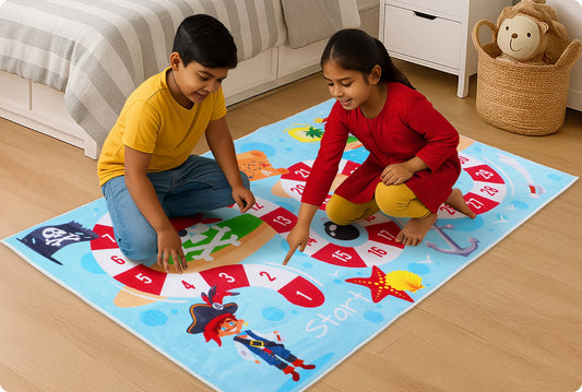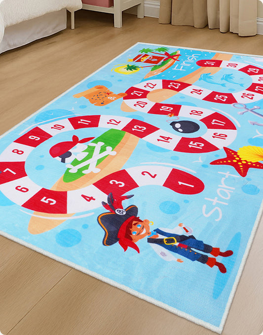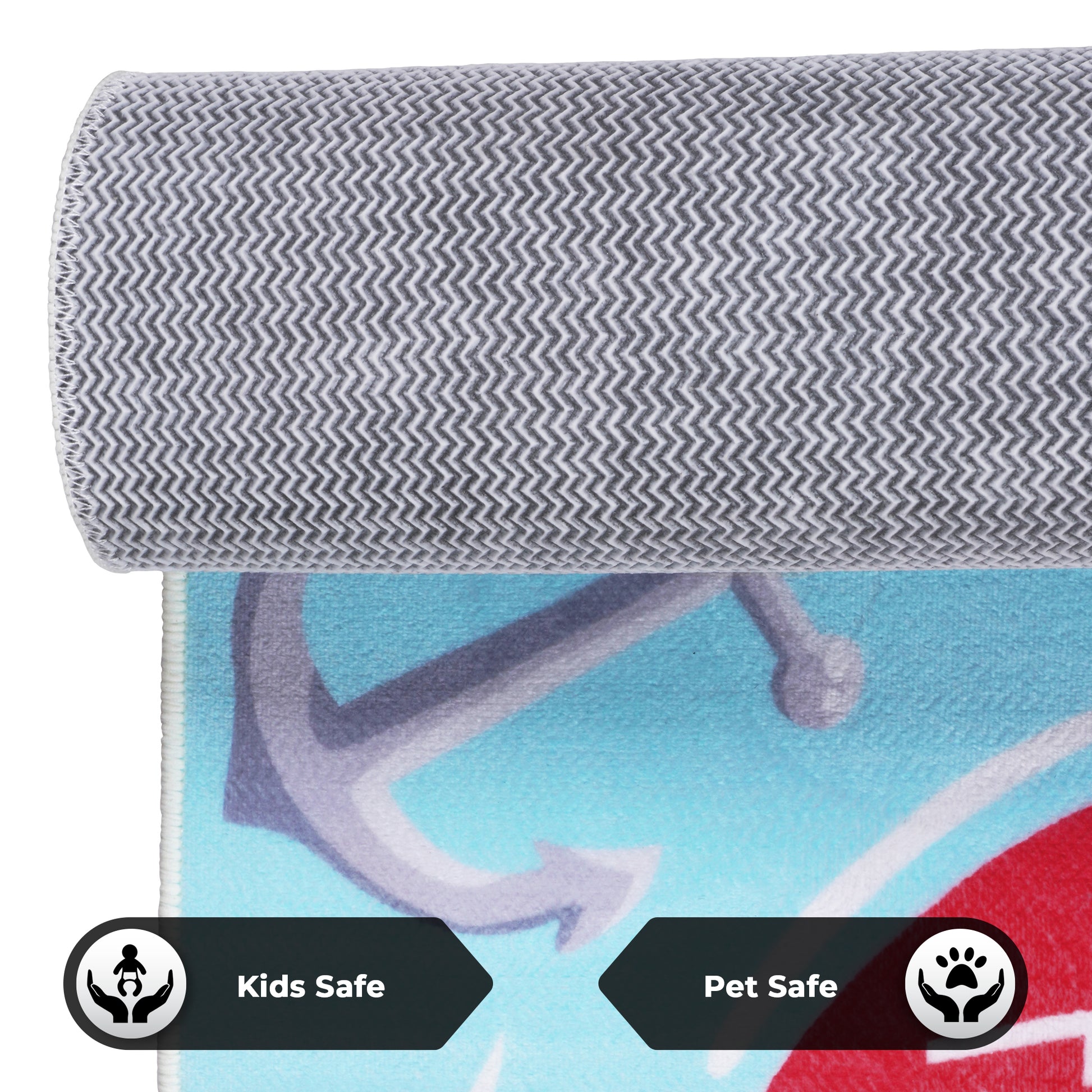 Story@Home Sky Blue Sea Pirate Design Printed Carpet With Anti-Skid Back For Kids