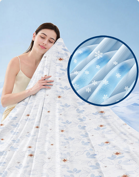 A: The dual-side cooling fabric maintains a temperature up to 5°C cooler than room temperature, providing an immediate cooling sensation upon contact. It helps regulate your body temperature to keep you sweat-free all night.