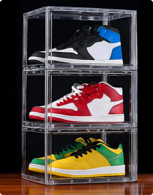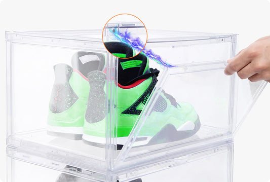 A: The sneaker box is made of high-quality, durable plastic to ensure long-lasting use and protection for your shoes.