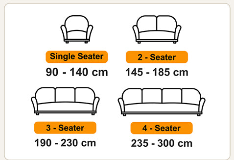 A: Our sofa covers come in sizes for 1, 2, 3, and 4-seater sofas and are stretchable to fit most standard sofa shapes.