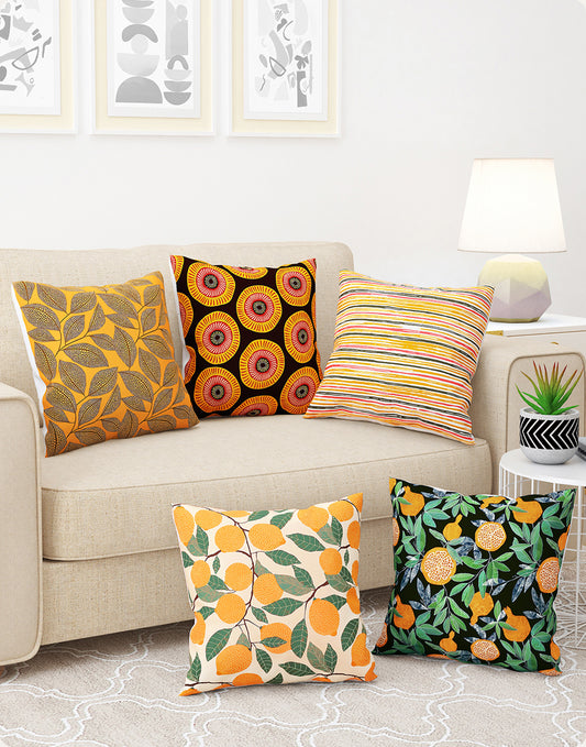 Story@Home Yellow Abstract Polyester 5 Units of Helio Cushion Covers